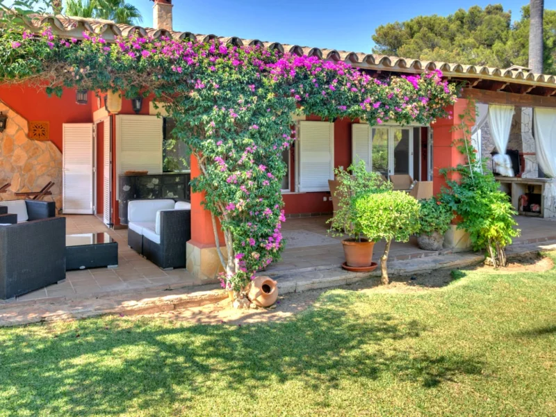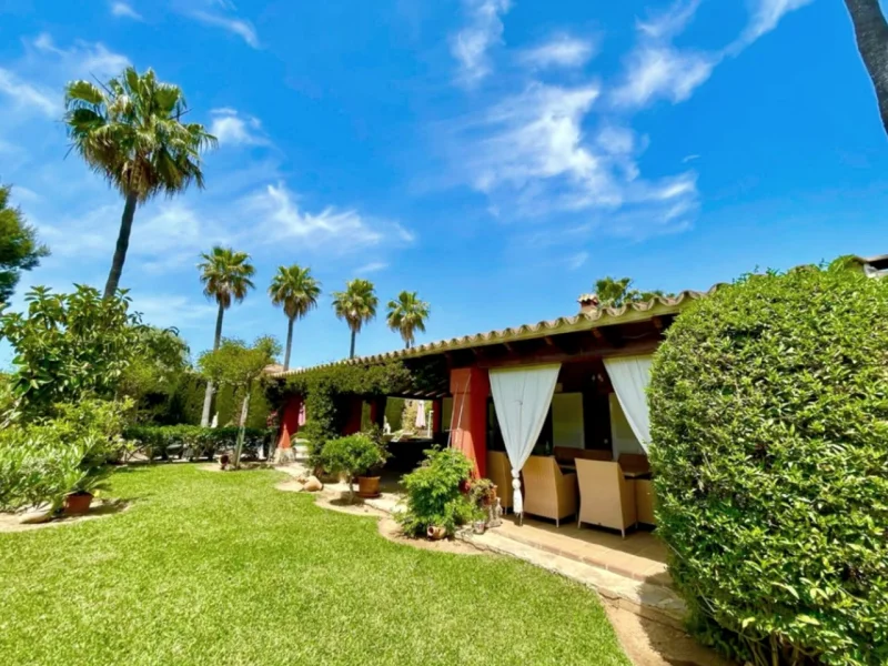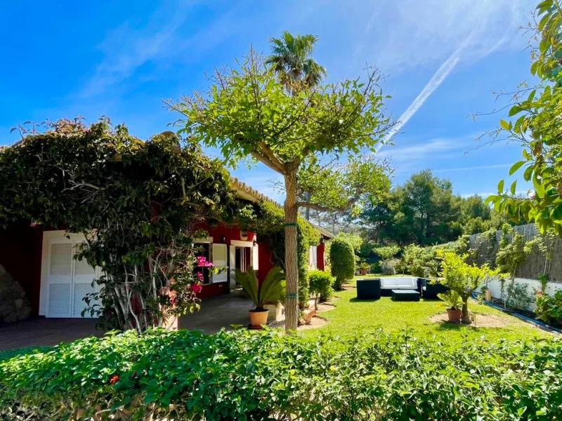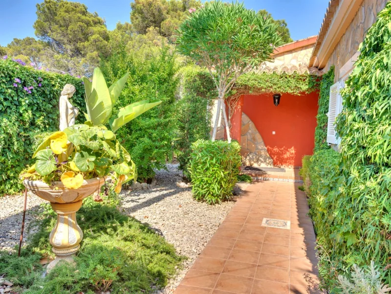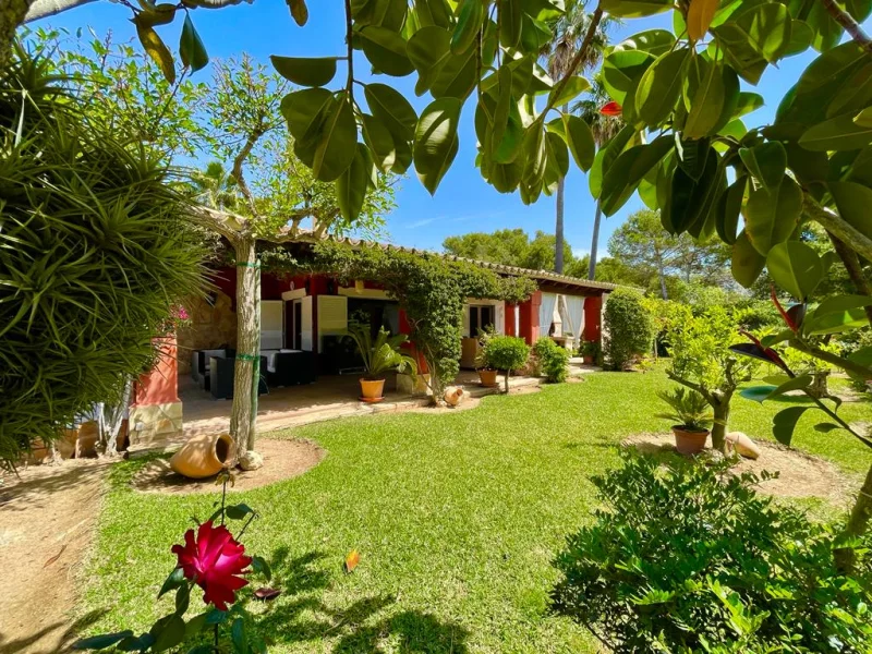 Blick auf Garten und Villa