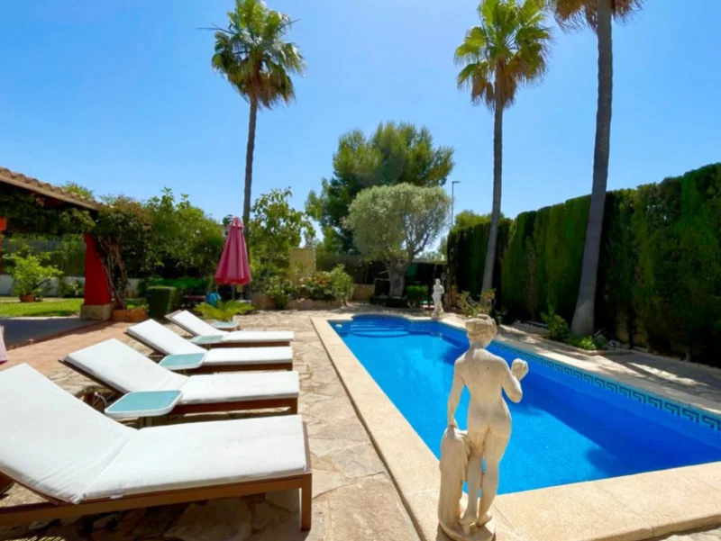 Blick auf Pool und Villa